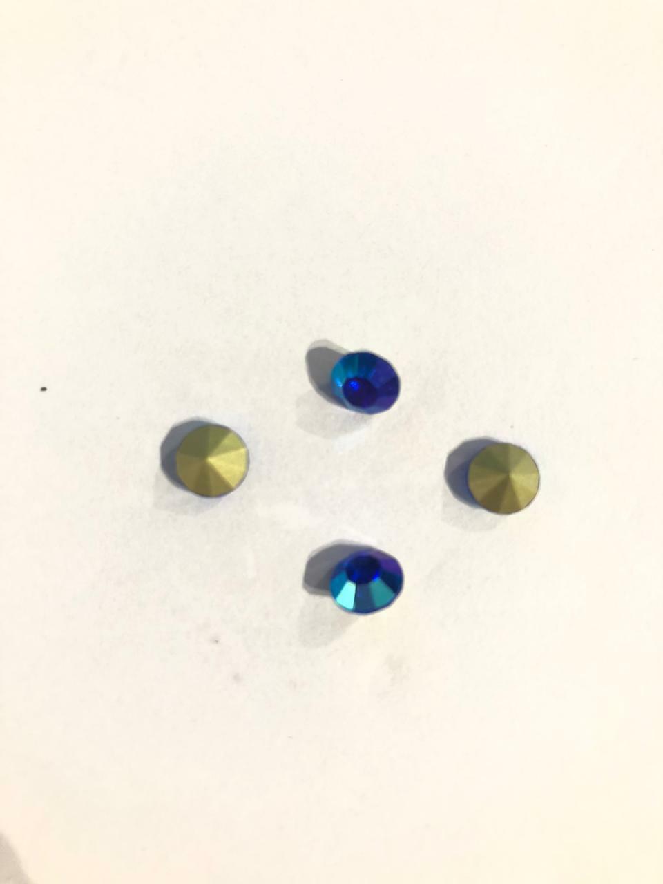 O strass está disponível em 3 cores irizadas, o que significa que suas cores mudam levemente conforme a luz incide sobre elas, criando um efeito visual que reflete diferentes tonalidades. Esse brilho multicolorido adiciona um toque especial às suas criações, tornando-as mais atraentes e exclusivas.